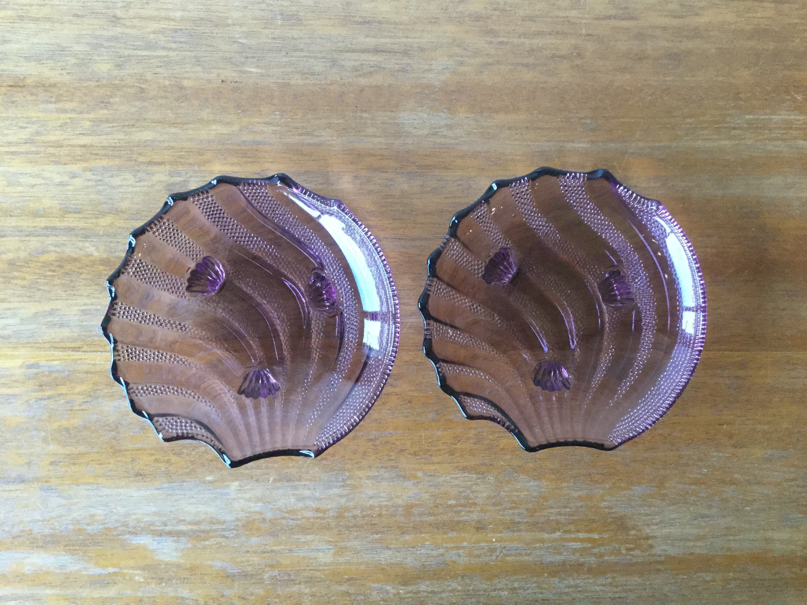 シェル型 脚付 パープルカラーのガラスプレート